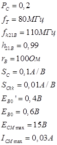 Исходя из требований по мощности и частоте, выберем транзистор КТ903А. Угол отсечки примем равным