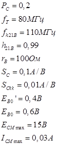 Выберем транзистор КТ312А. Он обладает следующими параметрами: