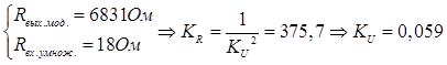 5. Модуль коэффициента передачи напряжения со входа на переход эмиттер-база: