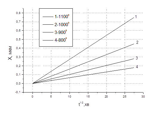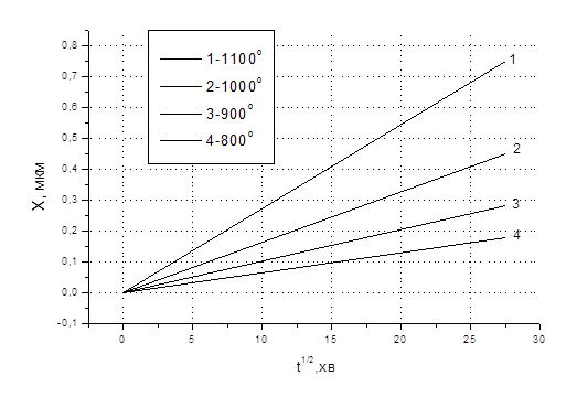 Рис. 1.2. Окислення в сухому кисні при тиску 1 ат.