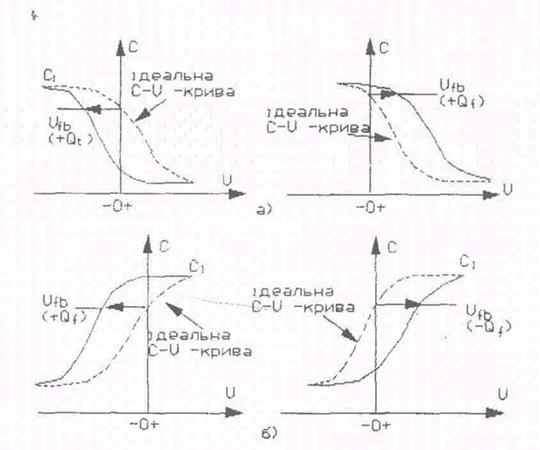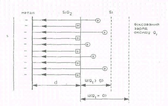 де Q(Кл/см2 ) – результуючий ефективний заряд на одиницю площі на межі розділу – Si-SiO2 ; N (см-2 ) – результуюче число зарядів на одиницю площі на межі розділу Si-SiO2 ; q – заряд електрона.