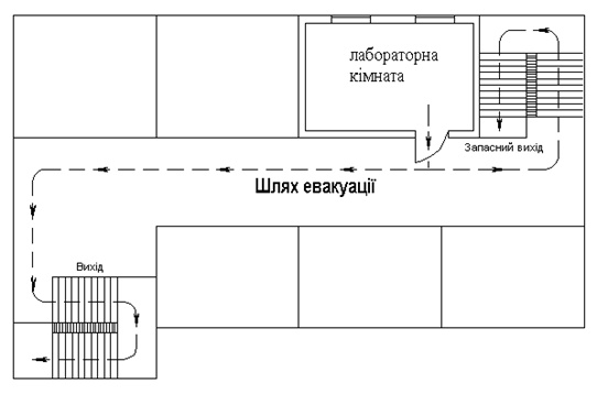Згідно СНиП 2. 09. 02. 85 приміщення технологічної лабораторії відноситься до категорії В ( пожежонебезпечна), в зв’язку з чим передбачаються встановлення пожежної сигналізації, а саме - димового повідомлювача ДИ-1. Як первинний засіб пожежогасіння передбачається встановити вуглекислотний вогнегасник ОУ-5. На випадок виникнення пожежі передбачені шляхи евакуації людей та матеріальних цінностей.