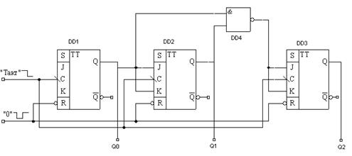 Рис. 3 Последовательный реверсивный 3-х разрядный счетчик