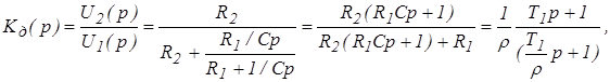 Передаточная функция дифференцирующего корректирующего устройства имеет вид