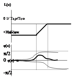 Интегро-дифференцирующее корректирующее устройство в области низких частот работает как интегрирующее, а в области высоких частот как дифференцирующее, поэтому оно совмещает достоинства интегрирующего и дифференцирующего устройств.