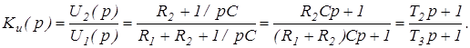 В зависимости от величин постоянных времени схемная реализация корректирующего устройства может быть различной: