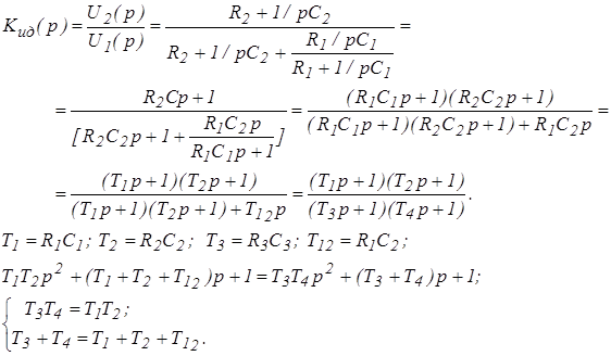 Интегро-дифференцирующее корректирующее устройство. Схема интегро-дифференцирующего корректирующего устройства приведена на рис. 3б