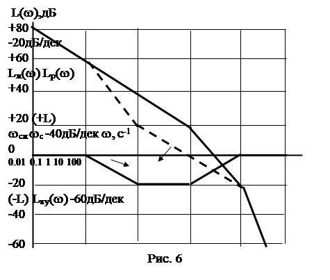 1. Строим ЛАЧХ заданной (реальной) системы (рис. 6).
