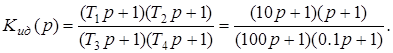 Для рассматриваемого примера, корректирующее устройство представляет собой интегро-дифференцирующее звено, передаточная функция имеет вид: