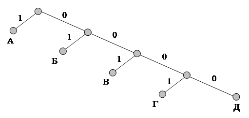 Кодовое дерево для неравномерного кодирования может выглядеть, например, так, как показано на рис. 2.