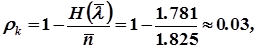 Таким образом, при кодировании сообщений с равновероятными буквами избыточность выбранного (равномерного) кода оказалась равной нулю.