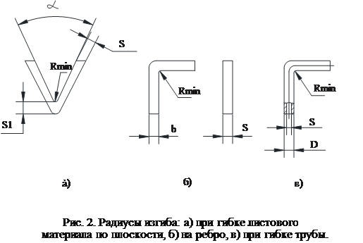 . При гибке труб (рис. 2в) с наружным диаметром до 20 мм, минимальный радиус для алюминиевых сплавов из сталей