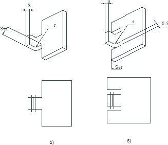 При конструировании детали типа крышек в местах гибки, в узлах необходимо выполнять технологические отверстия в зависимости от конфигурации развертки. В месте гибки должны быть предусмотрены вырезы соответствующей формы (рис 4г,д). Диаметр отверстия зависит от материала: