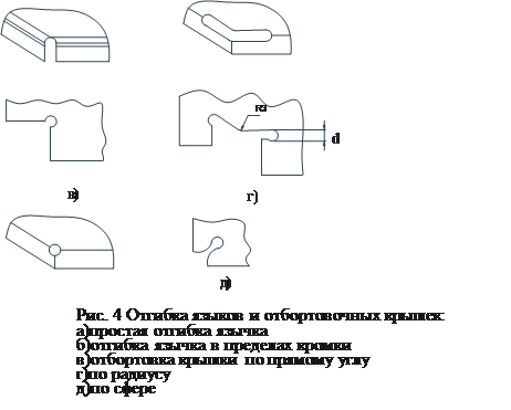 Отгибка язычков и отбортовка крышек: