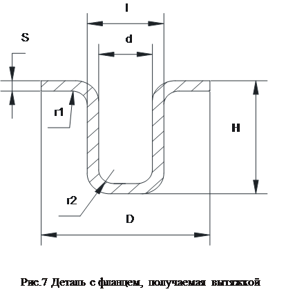 Основные требования к технологичности таких деталей: ограниченная высота Н, а также ее отношение к радиусу сопряжения на стенки. В деталях коробчатой формы H/r≤6 для мягких материалов, применяемых для вытяжки (рис. 7).
