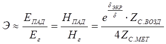 Исходя из данного предположения, можно считать, что из всех длин волн в экранируемое пространство проникают только волны Р2 и при этом ошибка не превосходит 2/r. Следовательно, эффективность экрана равна: