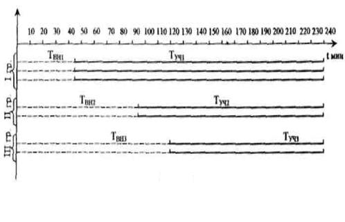 3. определяем затраты времени третьей группы почтальонов на внутреннею работу и на участке: