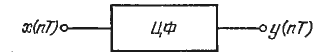 Цифровой фильтр можно представить структурной схемой, изображенной на рис. 1 На этой схеме х(пТ) и у(пТ) —соответственно входное воздействие и реакция фильтра на это воздействие. Между реакцией и воздействием существует определенное соответствие, которое можно выразить соотношением у(пТ) = R х(пТ) где R — оператор.