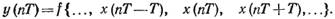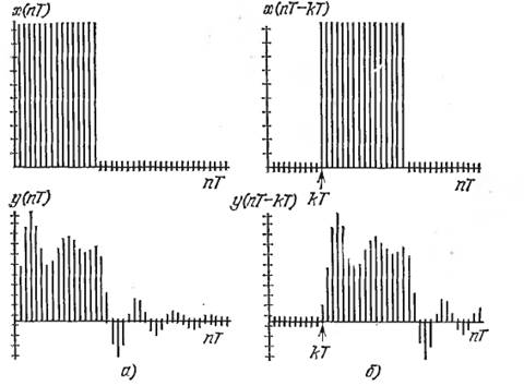 а—реакция на воздействие х(пТ); б — реакция на задержанное .воздействие х(пТ —kT )