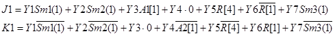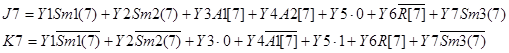 Для одержання функцій, які потрібно сформувати на ПЛМ зручно побудувати наступну таблицю в якій прописані операнди для АЛП в кожний момент часу. Причому y0 - випадок, коли немає сигналу на виконання операцій. Запишемо для КС1 операнди, які повинні надходити на АЛП при приході відповідного керуючого сигналу.