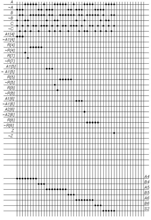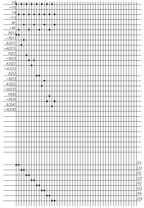 y4: R:= (A2(1:2)&R(1:2).~R(3:4).A2(5:8))