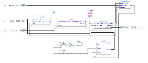 HDL-модель паралельного логічного контролера циклічної дії реалізовано мовою опису апаратури AHDL у середовищі MAXplus+II (проект - cyclomat_canon). Для наочності файл верхнього рівня ієрархії реалізований у графічному редакторі (рис.1).