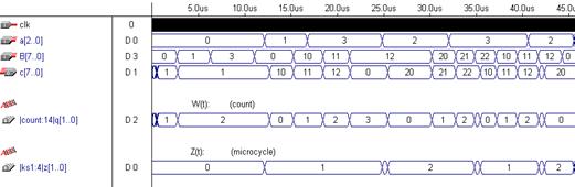 Рис.8. Фрагмент результатів моделювання паралельного логічного контролера циклічної дії