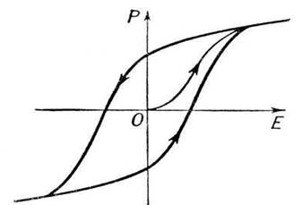 При магнітному гістерезису одному і тому ж значенню напруженості зовнішнього магнітного поля Н відповідають різні значення магнітного моменту М, показані на рисунку (1.1). Ця неоднозначність обумовлена впливом станів зразка, що передують даному (тобто магнітної передісторією зразка). Діелектричний гістерезис спостерігається зазвичай у сегнетоелектрика, наприклад титану барію. Залежність поляризації Р від напруженості електричного поля Е в сегнетоелектрика (рис. 1.2) подібна до залежності від М Н в феромагнетиків і пояснюється наявністю спонтанної електричної поляризації, електричних доменів та труднощами перебудови доменної структури. Втрати гістерезису складають більшу частину діелектричних втрат у сегнетоелектрика.