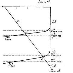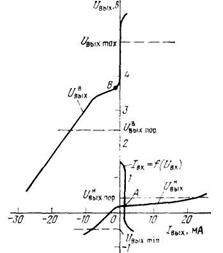 Выходная характеристика U ВЫХ = f ( I ВЫХ ) — зависимость выходного напряжения ЛЭ от выходного тока нагрузки. Эта характеристика в совокупности с входной позволяет определить нагрузочную способность ЛЭ, режим его работы и способ согласования переходных процессов в линиях связи.