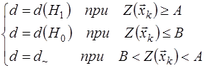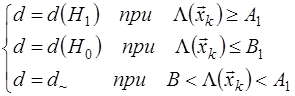 Решающие пороги вальдовской процедуры могут быть найдены на основе следующих рассуждений. Условие принятия решения в пользу гипотезы