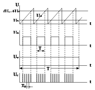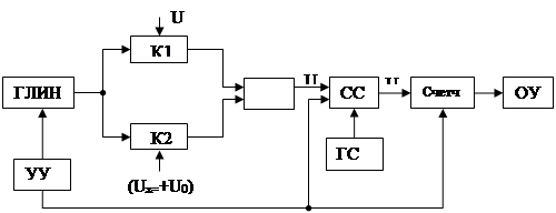 Как видно из рисунка 1, структурная схема ИЦВ с усреднением базируется на структурной схеме неинтегрирующего ЦВ с время-импульсным преобразованием. УУ не только обеспечивает синхронную работу всех узлов ЦВ, но и определяет время усреднения