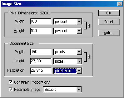 Установка флажков в окне Image Size