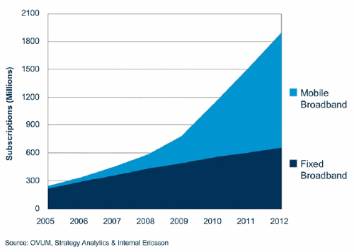 Мобильный широкополосный доступ становится все более распространенным, по мере того, как подрастает интернет-поколение, а вместе с ним и потребность иметь возможность широкополосного доступа везде, где бывает современный человек, а не только дома или в офисе. Из прогнозируемого числа в 1.8 млрд людей, которые к 2012 году обзаведутся широкополосным доступом, примерно две трети будут пользоваться им в мобильном варианте, причем большинство таких пользователей получат услуги мобильного ШПД благодаря сетями с поддержкой HSPA (High Speed Packet Access) и LTE (Long Term Evolution).