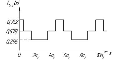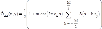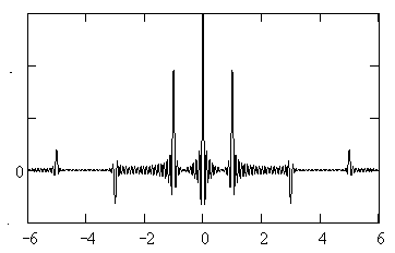 Спектр представляет собой последовательность дельта-функций с амплитудами, умноженными на модуляционную функцию ПЗС-матрицы.