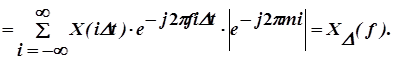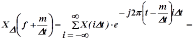 Таким образом, спектр дискрeтизованной функции Х(i Dt) получается путем периодического, с периодом 1/