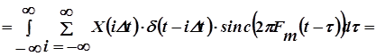 Пропуская дискретную последовательность Х(ti) через фильтр с импульсной характеристикой h(t), получим исходный непрерывный сигнал: