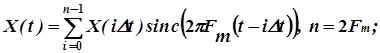 откуда и вытекает значение интервала дискретизации Δt, обеспечивающего восстановление исходного сигнала Х(t) по последовательности его отсчетов.