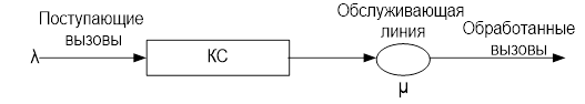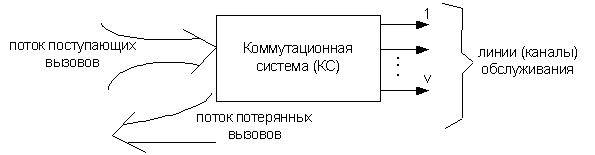 На вход КС поступает входящий поток вызовов, к выходам подключаем пучок исходящих линий емкостью