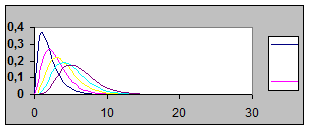 Рис. 4 Графики Пуассоновского распределения в зависимости от lt для различных k.