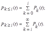 Наряду с распределением Pi (t) используют вероятности поступления не менее i требований в интервал t или не более i требований за время t :