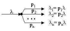 При разъединении пуассоновского потока на несколько потоков так, что каждое требование исходного потока с вероятностью p i ( Sp i = 1) поступает на i- тоенаправление, поток i направления будет также пуассоновским с интенсивностью lp i .