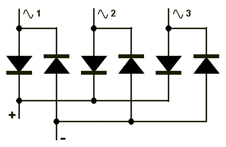 Рисунок 4. Трехфазная схема выпрямителя на полумостах