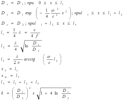 d1 – диаметр волновода (при другом сечении размеры определяющие поперечную площадь волновода).