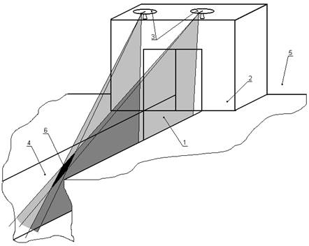 На рисунке 2.2 приведена схема размещения приемной и передающей антенн на шлюзе, где: 1 – ворота шлюза; 2 – здание-арка; 3 – приемная и передающая антенны; 4 – шлюзовая камера; 5 – водохранилище гидроэлектростанции; 6 – элемент разрешения РЛС.