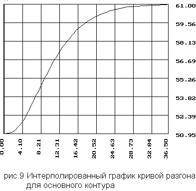 2.2 Координаты и график кривой разгона для внутреннего канала