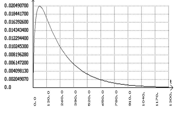 С помощью схемы каскадной системы получаем переходный процесс по возмущению: