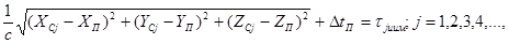 , а координаты j-го спутника на момент времени, предшествующий моменту приема на время распространения, - через