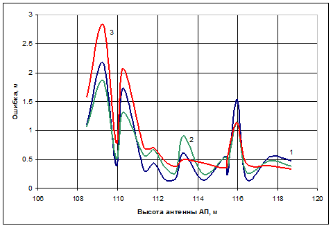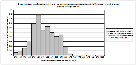 Результаты измерения в режиме с подвижной антенной (в том числе эксперименты с дискретно меняющейся высотой антенны вблизи затеняющей постройки) показаны на рисунках 5.5.5-5.5.8. гистограммы ошибок показаны на рисунках 5.5.10-5.5.17.
