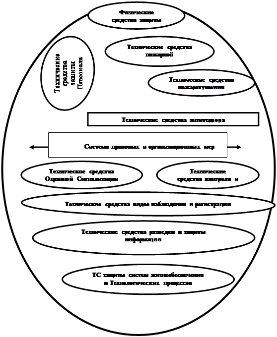 Исходя из необходимости получения максимальной эффективности мер по защите ценных ресурсов и учитывая, что «БЕЗОПАСНОСТЬ ОБЪЕКТА» - это состояние защищенности его ресурсов (персонала, материальных и информационных ценностей) от комплекса внутренних и внешних угроз, можно предположить, что совокупность мер по их защите от угроз должна включать меры: