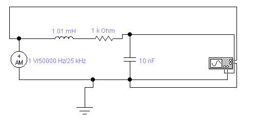 Собрали схему рабочей установки для исследование прохождения амплитудно-модулированного (АМ) колебания через одиночный колебательный контур